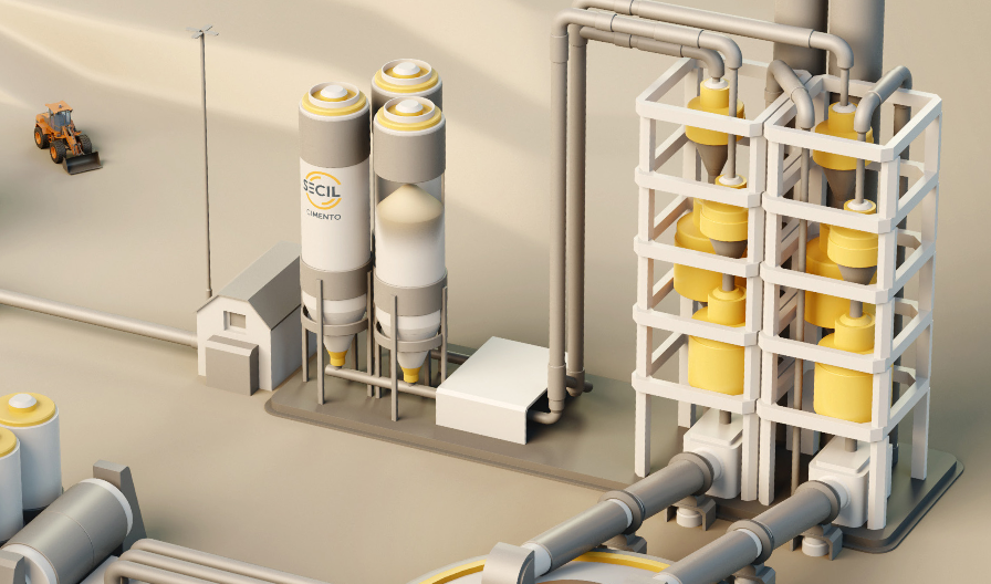 The raw meal is extracted from the storage silos and introduced into the pre-heating system (cyclone tower), where it is heated by the flue gases resulting from the burning of fuels.