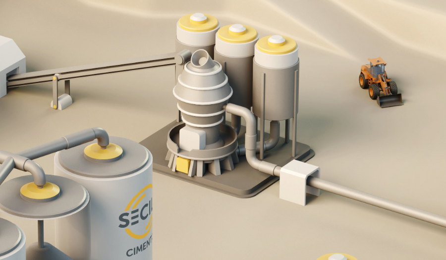 Cement is produced in horizontal tubular mills with grinding bodies. Clinker, gypsum (a setting regulator for cement), and inert additives are ground in well-defined proportions according to the quality plan, resulting in different types of cement with specific characteristics suitable for their use, which are stored in properly identified silos.