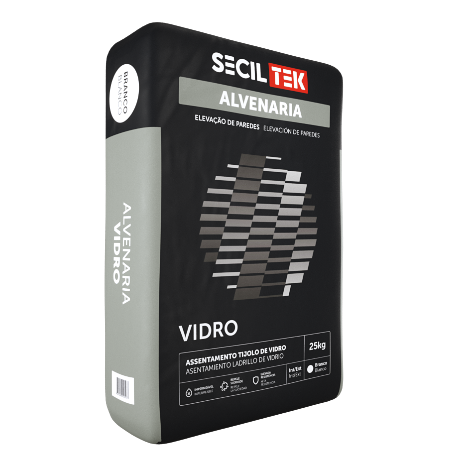ALVENARIA VIDRO is formulated from white cement, limestone and siliceous aggregates and admixtures, which give it excellent workability.