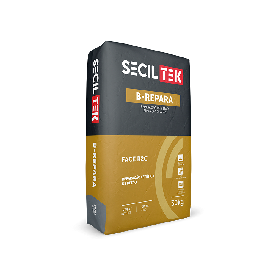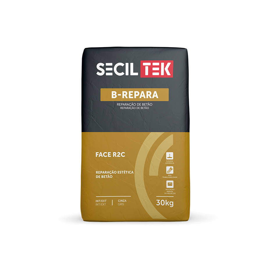 B-REPARA FACE R2C is a dry mortar formulated from mixed binders, carefully-selected siliceous and calcareous aggregates and admixtures, intended for the aesthetic rehabilitation of reinforced concrete surfaces.