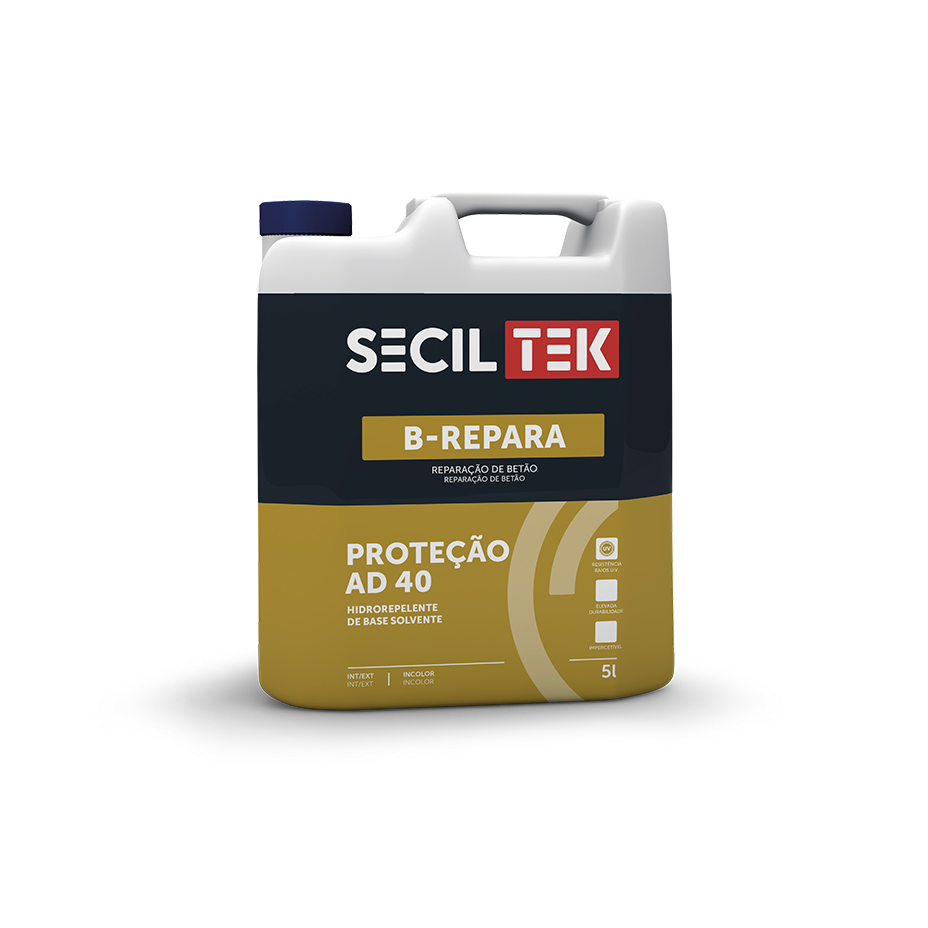 O B-REPARA PROTEÇÃO AD 40 is a polysiloxane solvent-based water repellent that repels water on porous surfaces such as concrete.