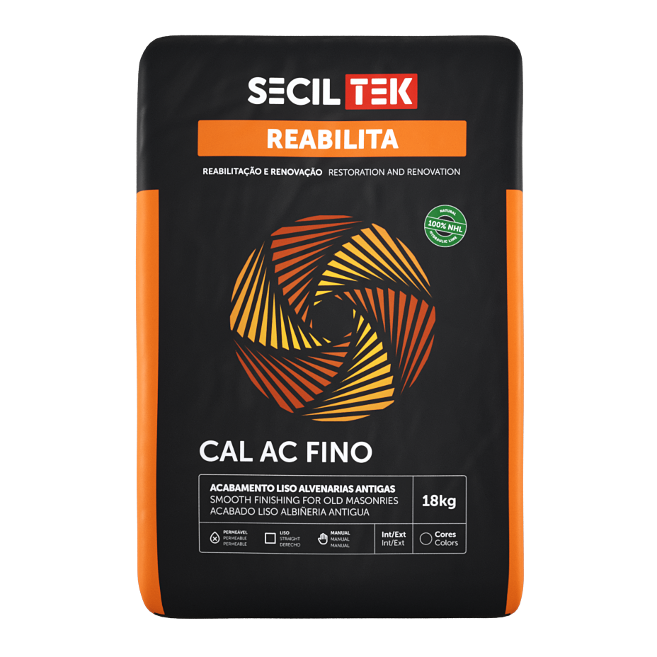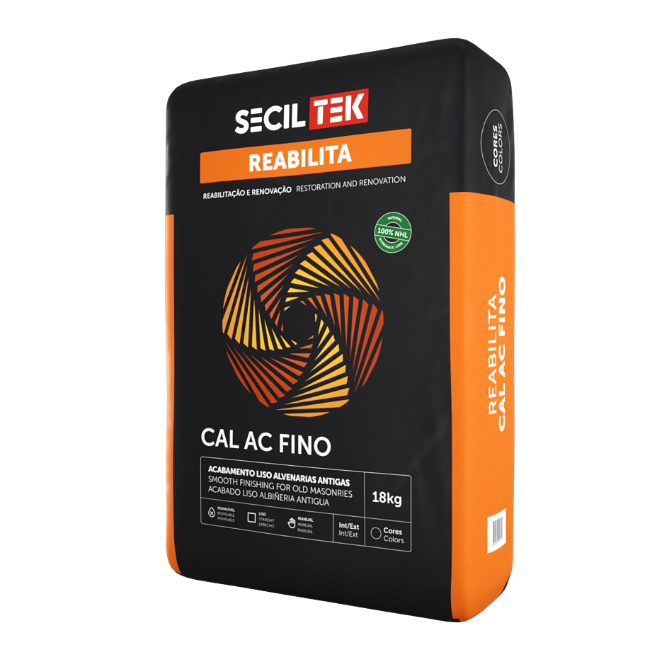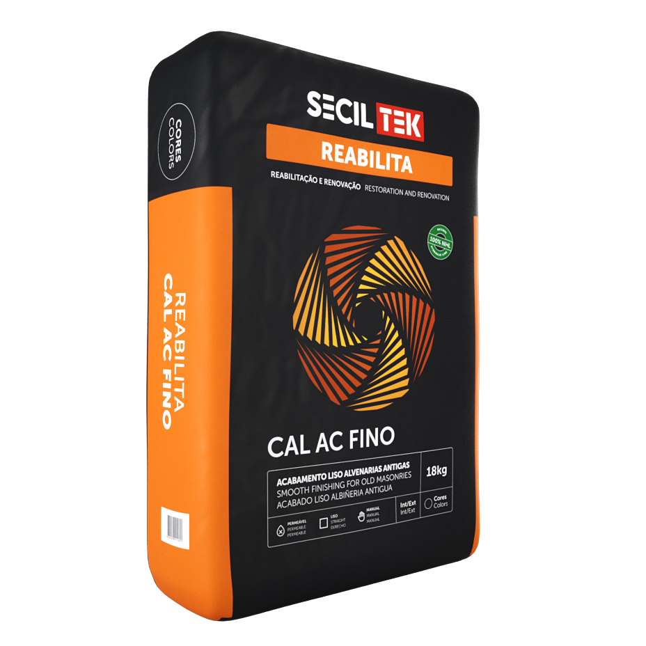 O REABILITA CAL AC FINO é formulado a partir de cal hidráulica natural, destinada à execução de acabamentos finos com excelente permeabilidade ao vapor em soluções de renovação e reabilitação de revestimentos antigos.